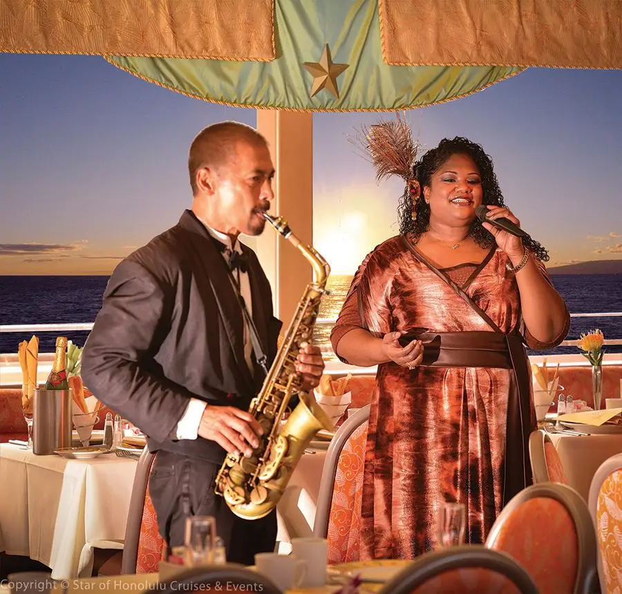 Hawaii’s largest sunset dinner cruise ship, the Star of Honolulu, sails out of Honolulu Harbor to Diamond Head offering stunning 360 degree views of the sunset and Waikiki city lights from 4 floors of walk-around decks and a 60 foot high observation deck.