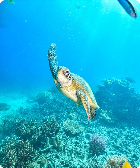 Sail from Kewalo Harbor aboard our 65’ catamaran with bathrooms, seating, and a full bar. Snorkel Waikiki's vibrant reefs, home to tropical fish and Hawaiian green sea turtles.